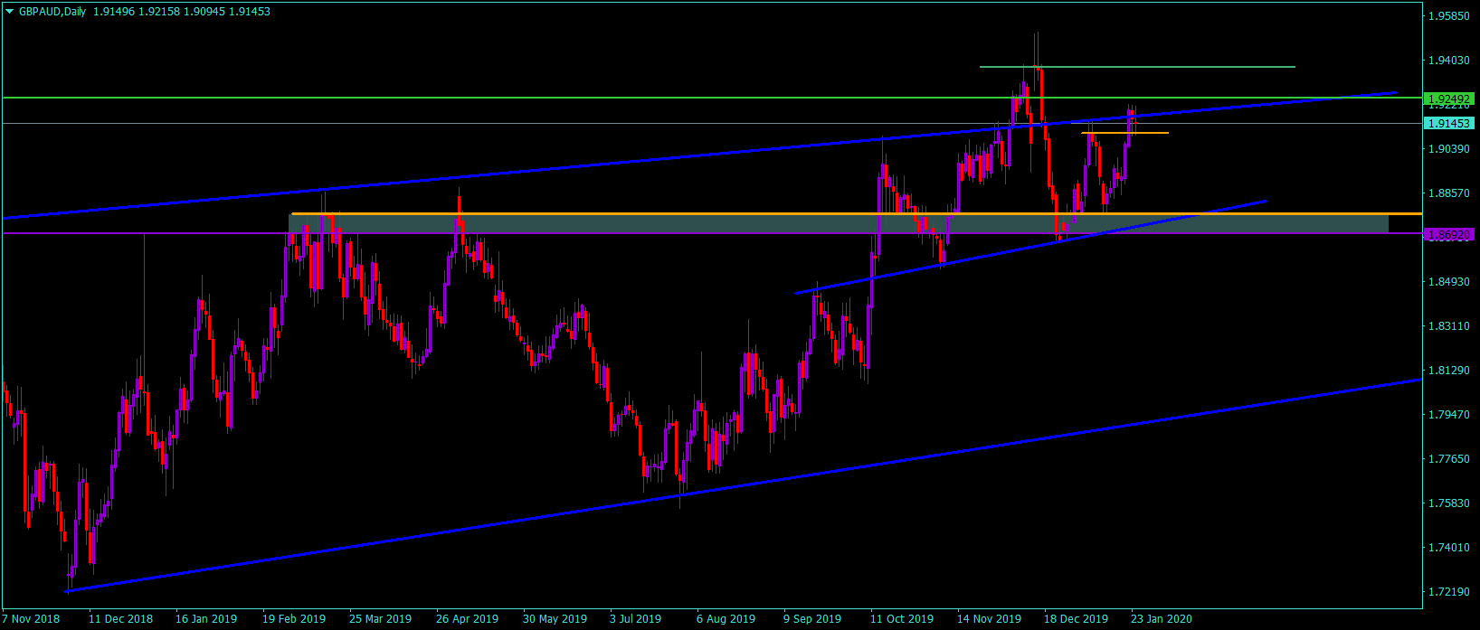Vývoj měnového páru GBP/AUD na denním grafu (D1):