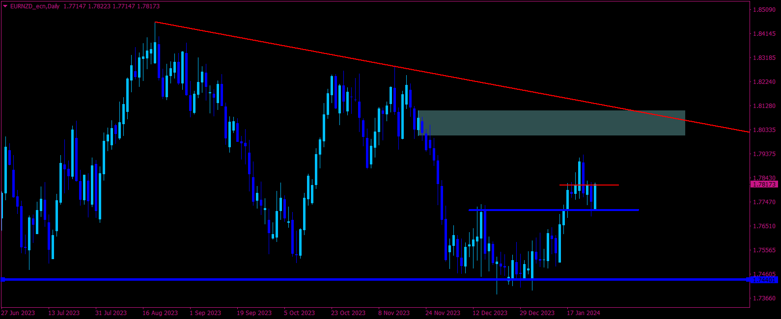 Vývoj měnového páru EUR/NZD na denním grafu (D1):