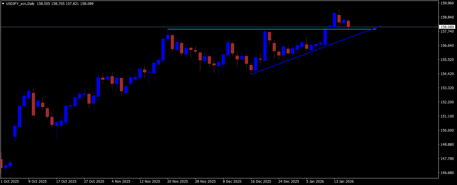 Vývoj měnového páru USD/JPY na denním grafu (D1):
