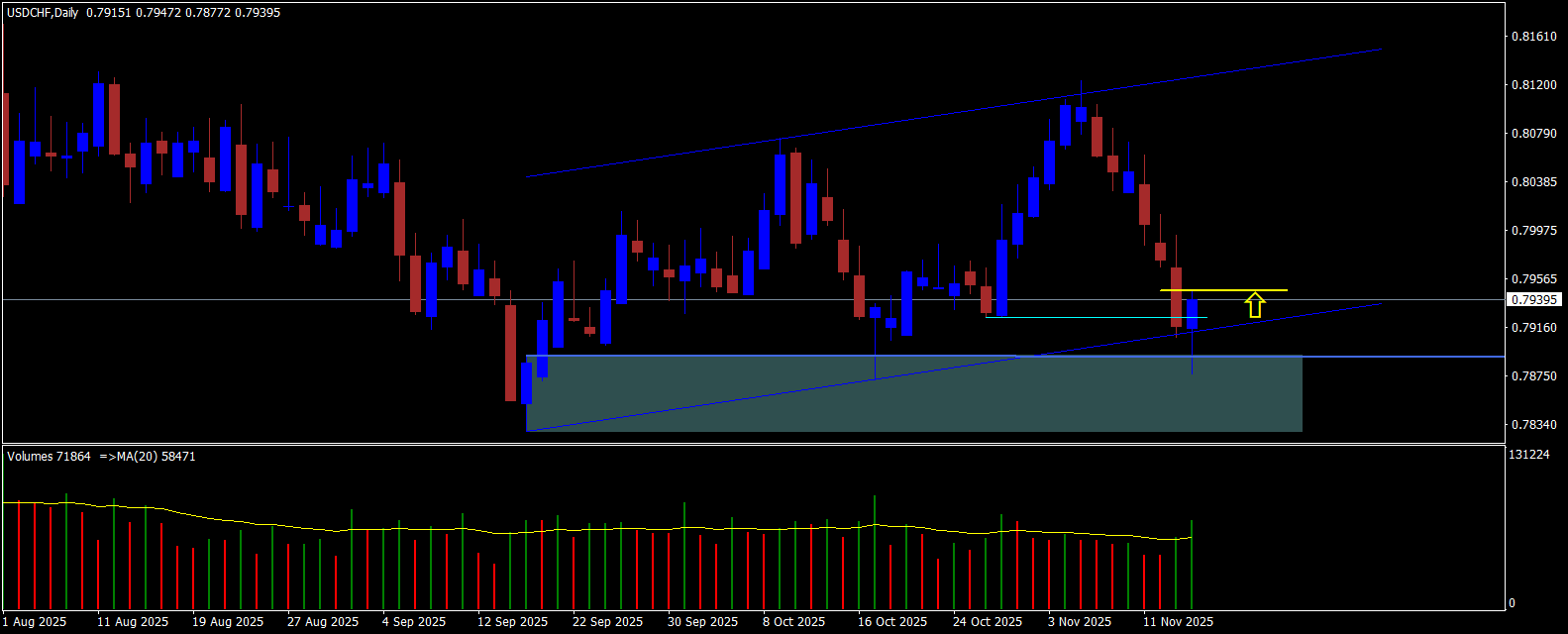 Vývoj měnového páru USD/CHF na denním grafu (D1):