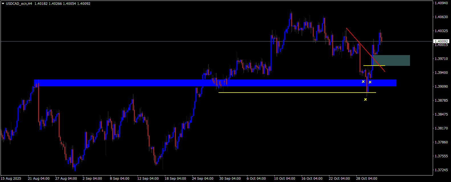 Na nižším časovém rámci měnového páru USD/CAD se v průběhu minulého týdne výrazně projevil zásadní cenový pohyb, kdy došlo k falešnému proražení předchozích minim a zároveň k silnému odrazu od významné S/R úrovně na denním grafu. Tento pohyb podtrhl vznik reverzní formace Hlava-Ramena, která často signalizuje potenciální obrat trendu. Po této formaci následovaly dva výrazné růstové dny provázené zvýšenou volatilitou, jež potvrzují nástup býčí síly. V současnosti je tedy pravděpodobná korekce této růstové fáze, přičemž potenciální oblast pro vstup do buy pozice se nachází v rámci Fair Value Gap (FVG) na denním grafu, jak je vyznačeno ve přiloženém screenu. Tento prostor může představovat atraktivní obchodní příležitost pro opatrné nastavení long pozice se zaměřením na potvrzení dalších signálů.