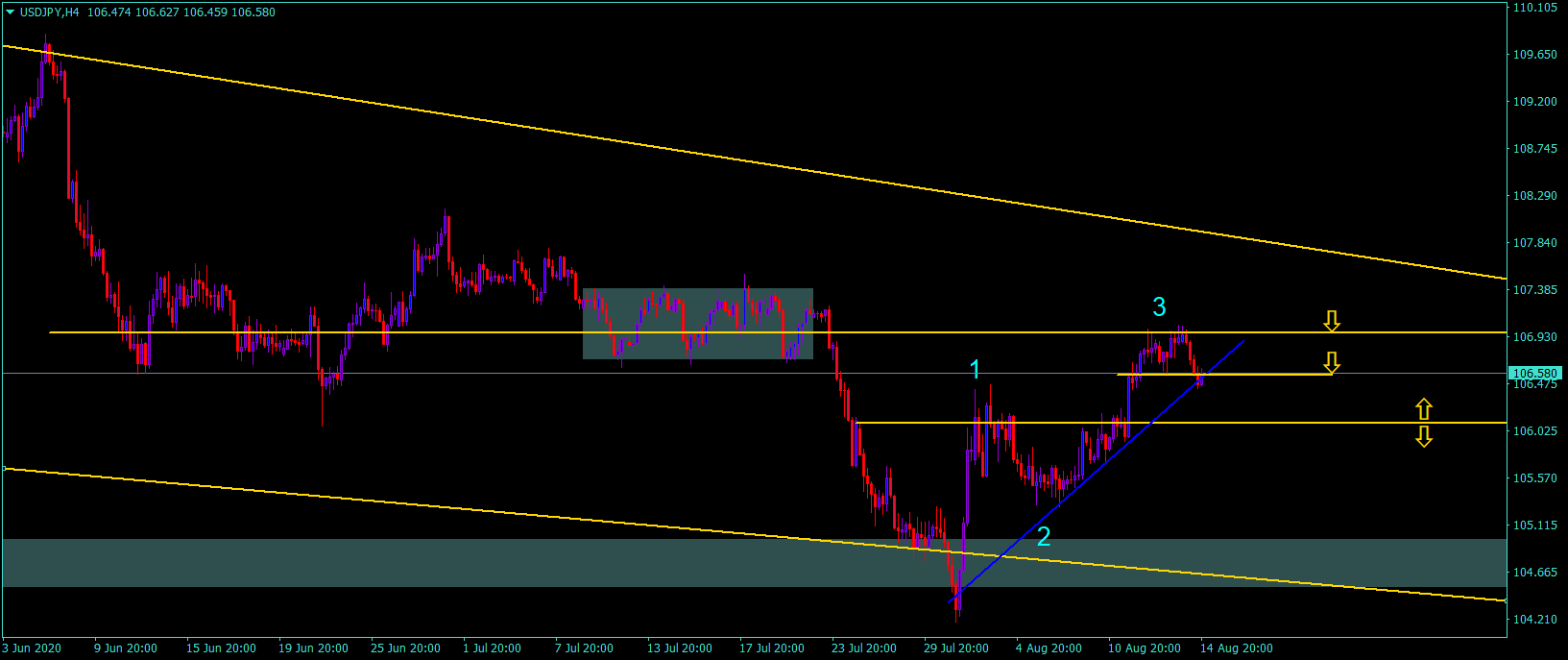 Další možností je spekulace na to, že aktuální cenu (rezistenci) budou obchodníci považovat za dostatečně zajímavou pro to, aby zde došlo k zahájení většího prodeje a cena začala opět klesat. V tomto případě by jsme byli svědky vytvoření medvědího obratového patternu nebo konsolidace. Pro mne je důležitá S/R úroveň na čtyřhodinovém grafu 106.56, která určuje změnu trendu spolu s trendovou čárou na čtyřhodinovém časovém rámci. Nejbližší cíl protitrendových obchodů vidím na SR úrovni 106.10