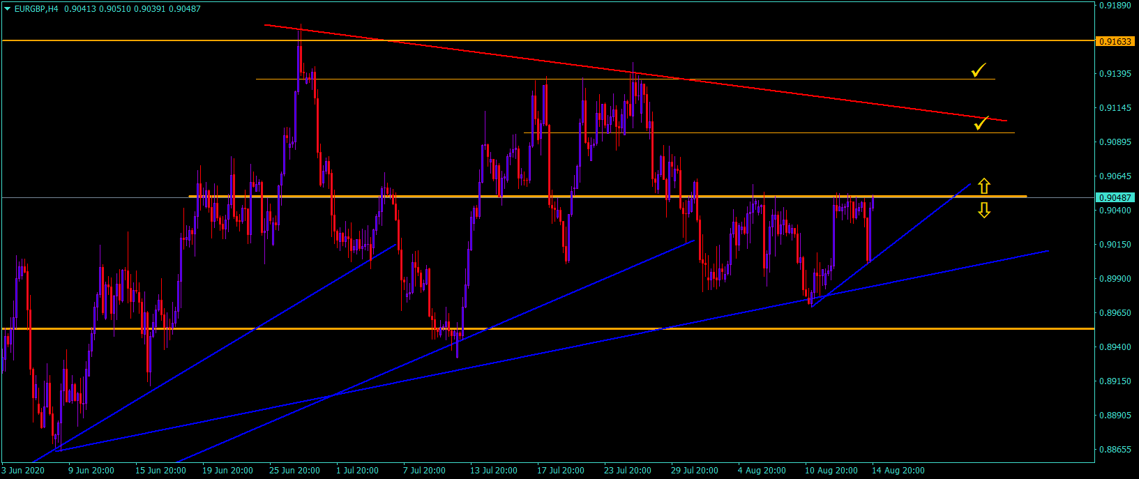 Od 19.3 2020 do 30.4.2020 probíhal výprodej EUR/GBP. Od prvního května cena opět začala růst dokud nedošlo k vyplnění D1 JVS (23.3). Od dosažení tohoto cíle se cena pohybuje v konsolidaci. Hranice této konsolidace tvoří ceny 0.8986 a 0.9132.