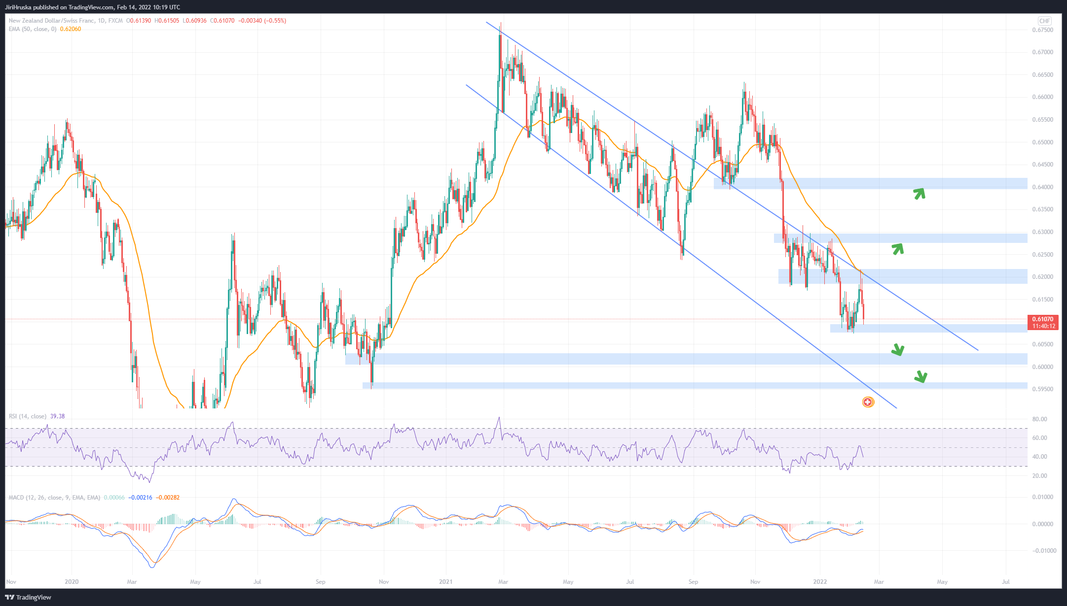 Vývoj měnového páru NZD/CHF ze 14.02.2022 (denní graf – D1):