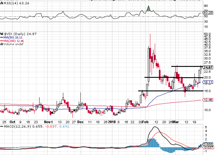 Index volatility VIX (takzvaný index strachu, který měří rozkolísanost trhu) při pátečním poklesu S&P 500 o více než 2 % přidal jen 7 %. Ceny akcií jsou na úrovni z 12. února, VIX je ale výrazně níže. Zřejmě již neprobíhá rychlé dokupování zajišťovacích opcí, obnovený normál kolísavosti cen je tedy zřejmě již v portfoliích zohledněn.