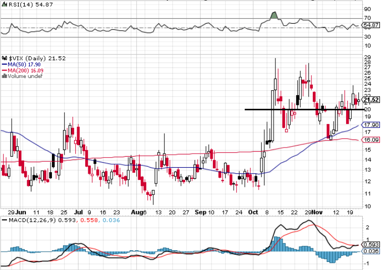 Během týdne nepřišly žádné pozitivní zprávy. Po Dnu díkůvzdání se index S&P 500 přiblížil k důležitému supportu v zóně 2 620 až 2 600, který je vlastně poslední býčí baštou. Jde o pravděpodobně poslední šanci na obrat severním směrem. První vlaštovkou lepších zítřků by byl návrat do pásma 2 700 až 2 800, další pak proražení nad 200denní průměr, u kterého by se index mohl chovat jako u rezistence.