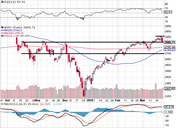 Průlom nad 2 820 neměl dlouhého trvání, v pátek se index S&P 500 po ztrátě o bezmála dvě procenta vrátil na spodní okraj pásma 2 800 až 2 820. Za týden tak klesly všechny hlavní indexy a sešup by mohl pokračovat až k supportu na 2 700 indexu S&P 500. Na opačné straně je silná rezistence v zóně 2 800 až 2 820.
