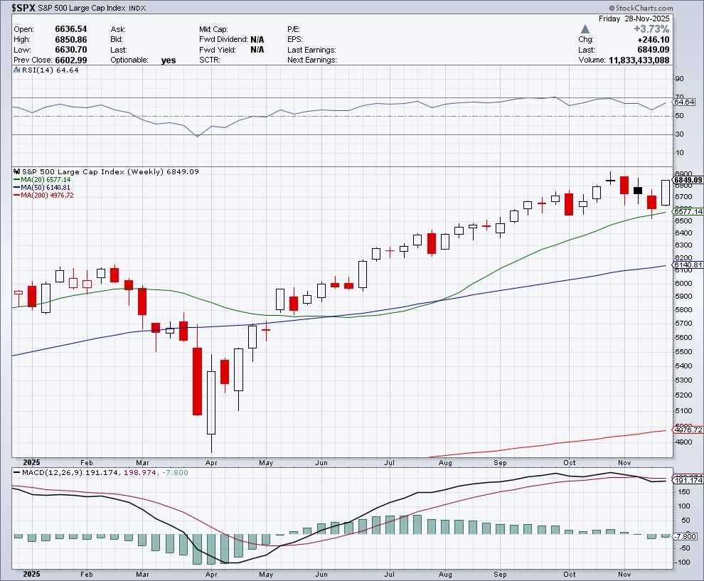 Index S&P 500 v předchozím týdnu testoval důležité pásmo podpory 6 500 až 6 550, od kterého se odrazil k silnému růstu. V uplynulém týdnu rostl ve všech čtyřech obchodních dnech a uzavřel procento pod historickým intradenním maximem (0,61 % pod zavíracím rekordem).