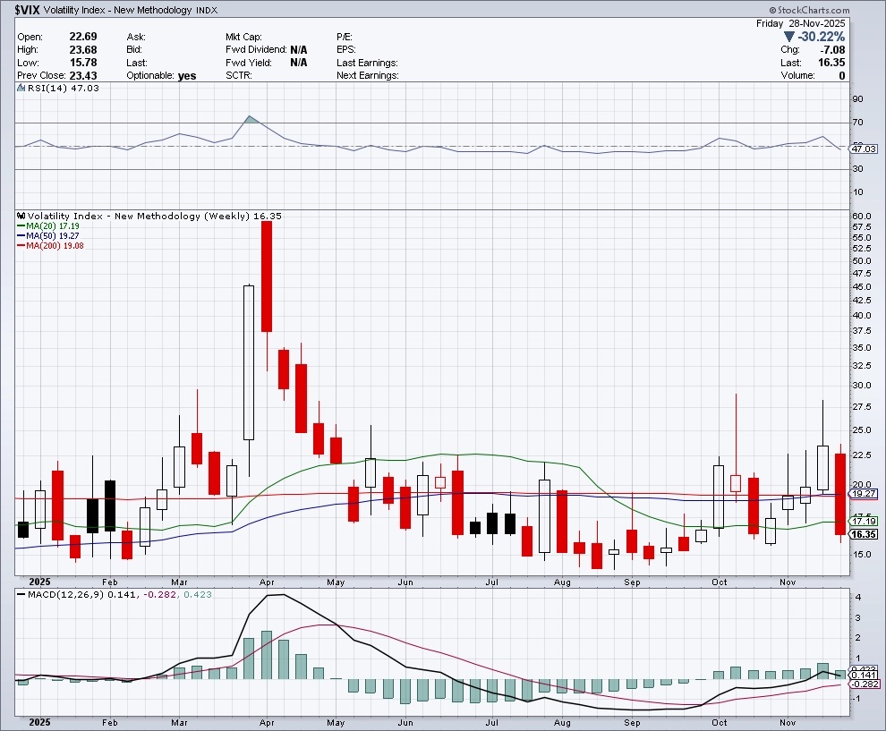 Index volatility VIX (takzvaný index strachu, který měří rozkolísanost trhu) prudce klesl, za týden se snížil o 30,22 %. Jeho maximum z předchozího čtvrtka se ukázala jako nákupní signál pro americké akcie. Index strachu je tak na úrovni, která je pro něj letos běžná.