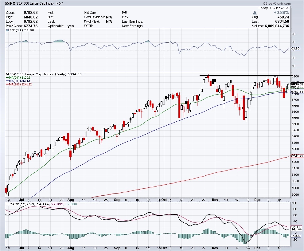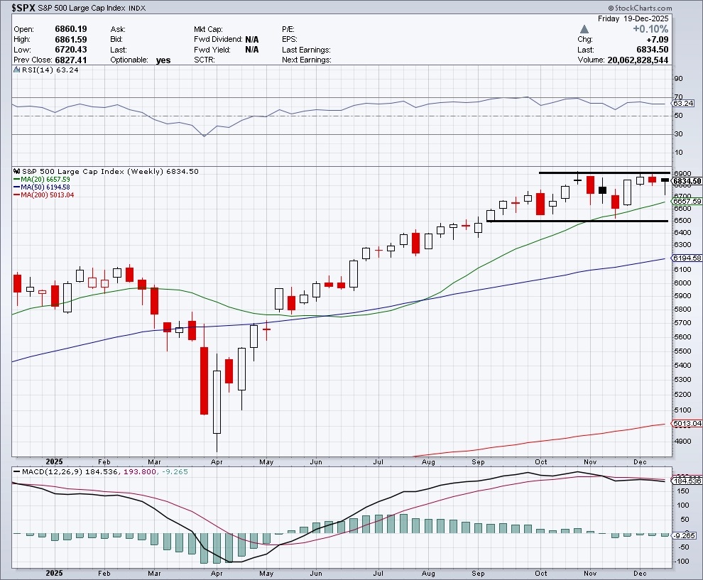 Index S&P 500 i další týden zůstal v rozpětí 6 500 až 6 900, ve kterém je od poloviny září. Sezónnost je příznivá, ve středu začíná "okénko" pro takzvanou Santa Claus rally a výraznější denní změny by v této části roku byly velkým překvapením. Od začátku roku S&P 500 přidává 16,20 % (pravda, v korunách je zhruba na nule).