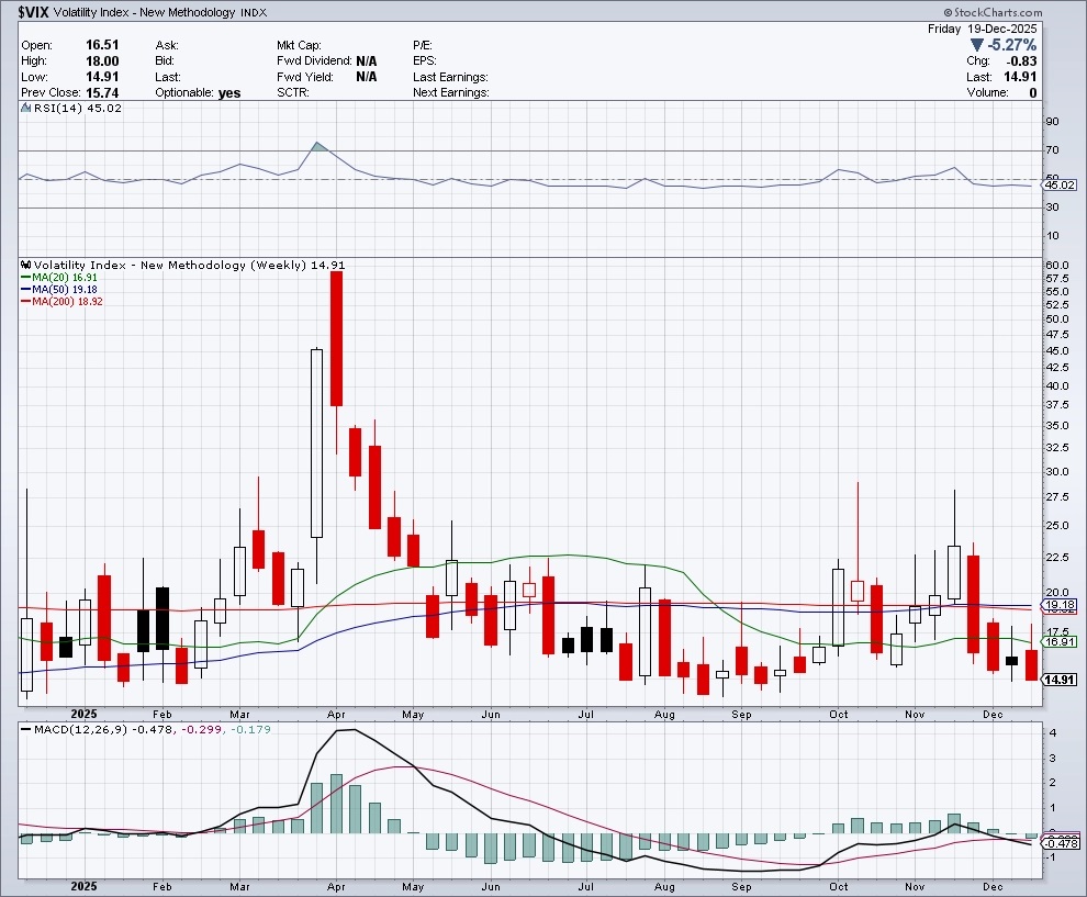 Index volatility VIX (takzvaný index strachu, který měří rozkolísanost trhu) při poklesech na akciovém trhu zůstal hluboko pod 20, při oživení naopak svižně klesal. Pro akcie je jeho aktuálně nízká hladina optimistickým signálem.