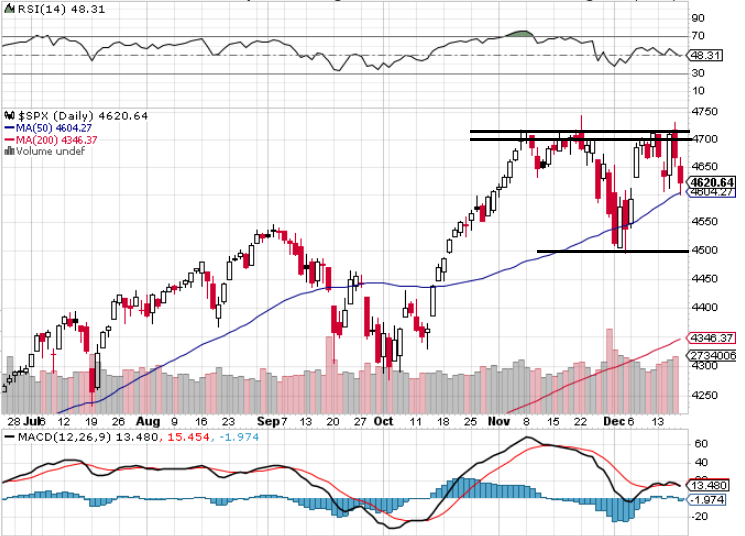 Rozpětí denních svíček bylo v týdnu opět široké. V pondělí přišla protireakce na předchozí rychlý růst a sestup pokračoval i v úterý. Ve středu, když Fed oznámil rychlejší omezování podpory ekonomiky, za poslední dvě hodiny obchodního dne index S&P 500 vystoupal o více než procento a půl a dostal se mírně nad 4 700, do blízkosti historického maxima. Další dva dny ale opět klesal. Nedokázal tak opakovaně potvrdit průraz rezistence okolo 4 700 a je opět poblíž 50denního průměru. Na začátku měsíce to byla podpora okolo 4 500, nyní již 4 600.