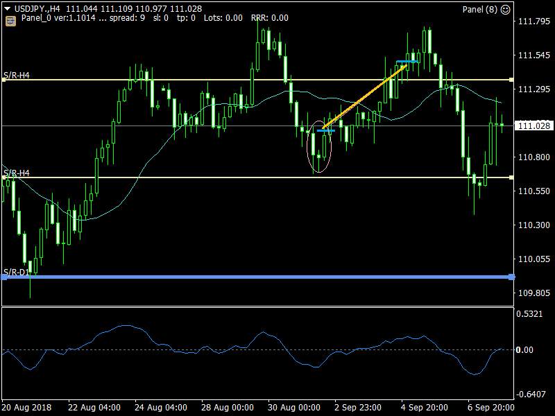 Měnový pár USD/JPY také po avizovaném long signálu putoval nahoru o necelých 80 pipů k lokální rezistenci, odkud opět od poloviny týdne oslaboval ke sledovanému swing supportu 110,70 +/-. Po falešném prolomení tohoto supportu měnový pár opět posiluje. Růstovou podporu v pátek dolaru (a tedy i USD/JPY) poskytly i dobrá data z americké nezaměstnanosti.