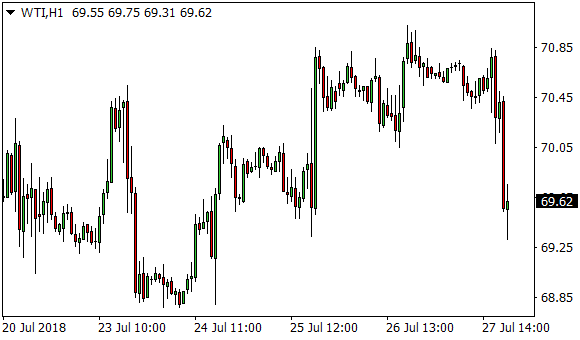 Vývoj ceny ropy WTI (1hodinový graf – H1):