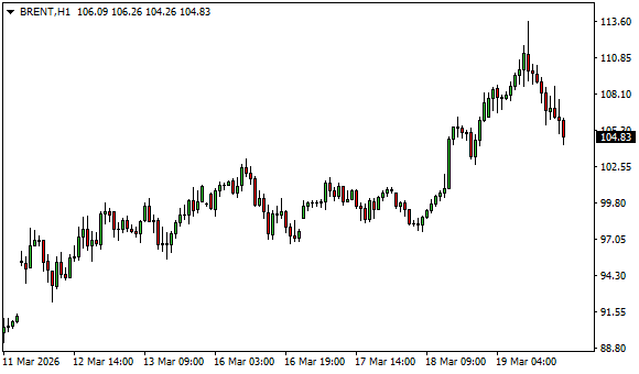 Vývoj ceny ropy Brent (1hodinový graf - H1):