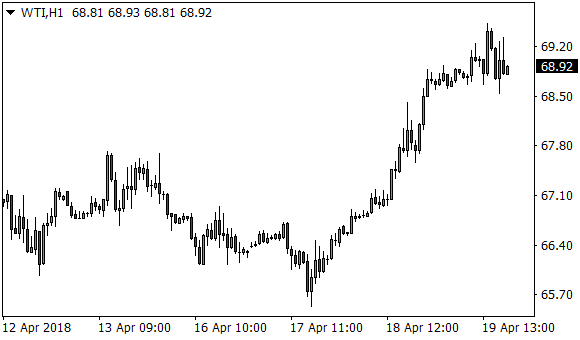Vývoj ceny ropy WTI (1hodinový graf – H1):