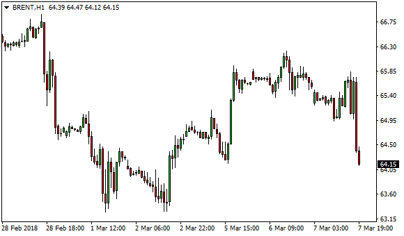 Vývoj ceny ropy Brent (1hodinový graf – H1):