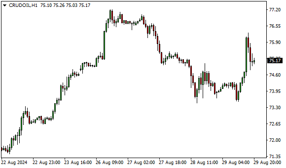 Vývoj ceny ropy WTI (1hodinový graf - H1):