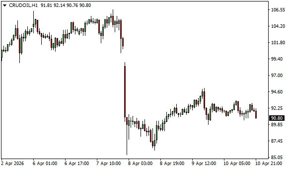 Vývoj ceny ropy WTI (1hodinový graf - H1):