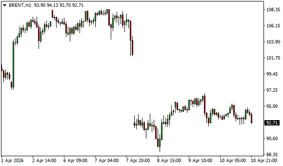 Vývoj ceny ropy Brent (1hodinový graf - H1):