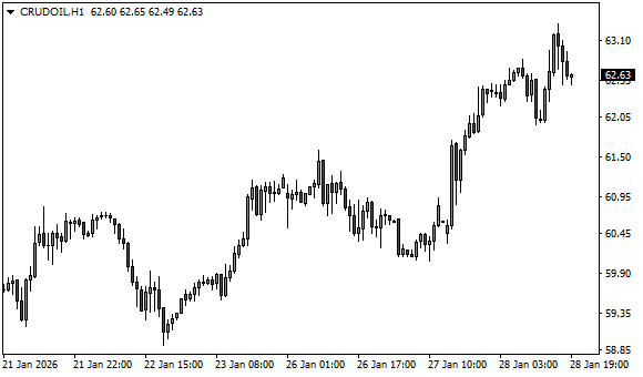 Vývoj ceny ropy WTI (1hodinový graf - H1):