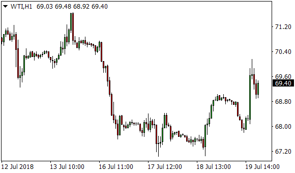 Vývoj ceny ropy WTI (1hodinový graf – H1):