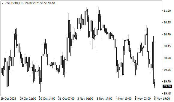 Vývoj ceny ropy WTI (1hodinový graf - H1):
