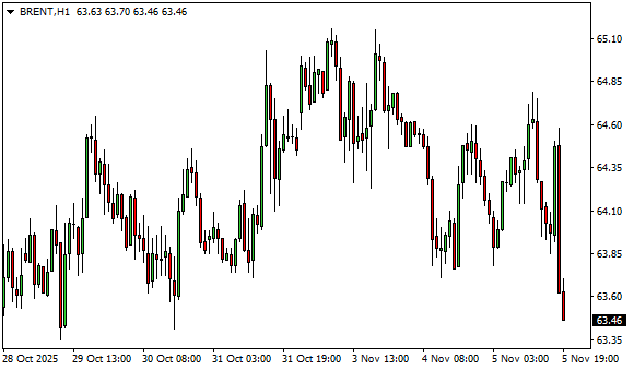 Vývoj ceny ropy Brent (1hodinový graf - H1):