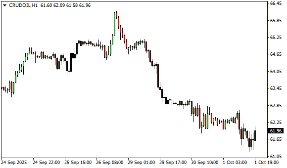 Vývoj ceny ropy WTI (1hodinový graf - H1):