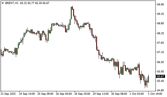 Vývoj ceny ropy Brent (1hodinový graf - H1):