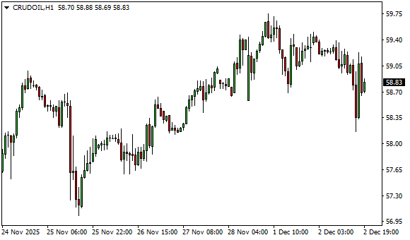 Vývoj ceny ropy WTI (1hodinový graf - H1):