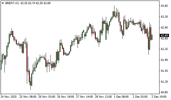 Vývoj ceny ropy Brent (1hodinový graf - H1):