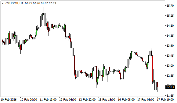 Vývoj ceny ropy WTI (1hodinový graf - H1):