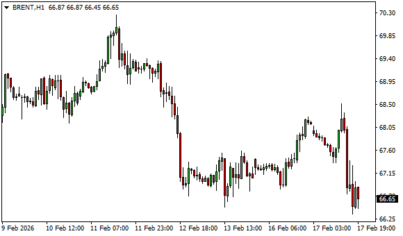 Vývoj ceny ropy Brent (1hodinový graf - H1):