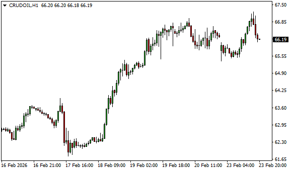 Vývoj ceny ropy WTI (1hodinový graf - H1):