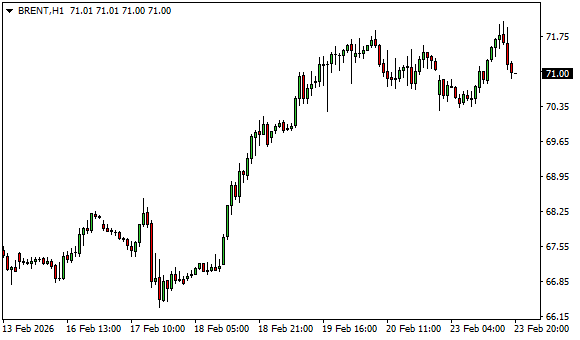 Vývoj ceny ropy Brent (1hodinový graf - H1):