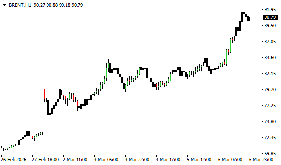 Vývoj ceny ropy Brent (1hodinový graf - H1):