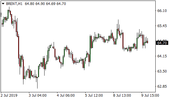 Vývoj ceny ropy Brent (1hodinový graf – H1):
