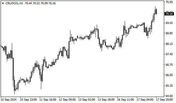 Vývoj ceny ropy WTI (1hodinový graf - H1):