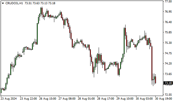 Vývoj ceny ropy WTI (1hodinový graf - H1):