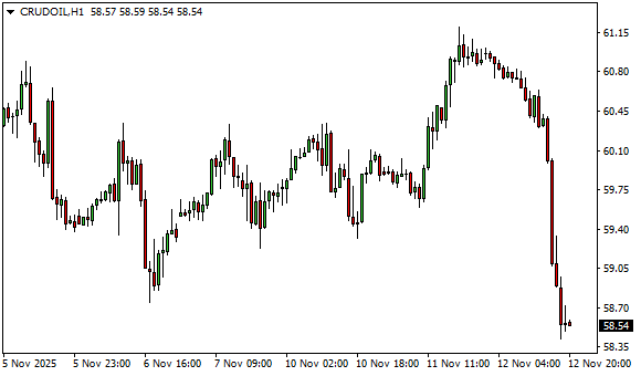 Vývoj ceny ropy WTI (1hodinový graf - H1):