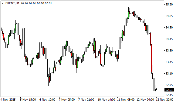 Vývoj ceny ropy Brent (1hodinový graf - H1):