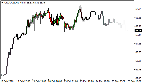 Vývoj ceny ropy WTI (1hodinový graf - H1):