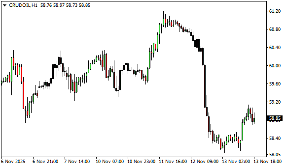 Vývoj ceny ropy WTI (1hodinový graf - H1):