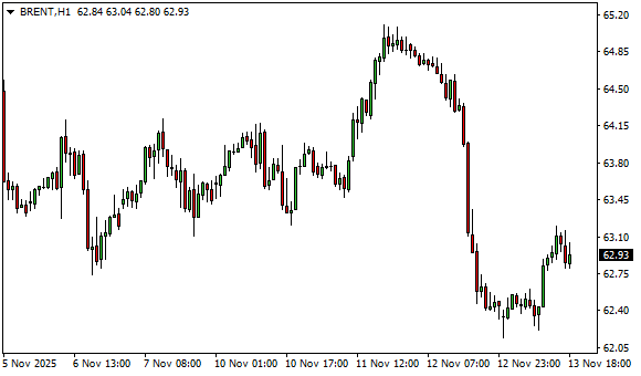 Vývoj ceny ropy Brent (1hodinový graf - H1):