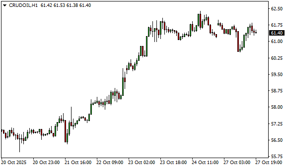 Vývoj ceny ropy WTI (1hodinový graf - H1):