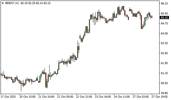 Vývoj ceny ropy Brent (1hodinový graf - H1):