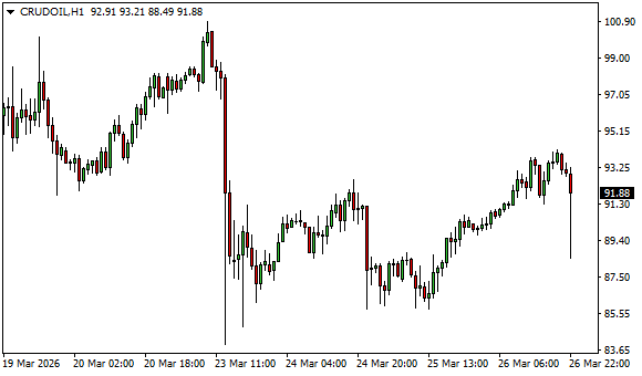 Vývoj ceny ropy WTI (1hodinový graf - H1):