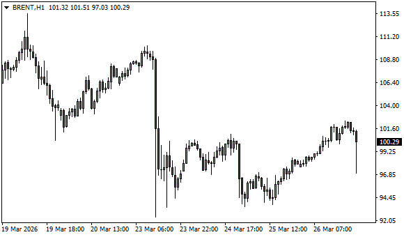 Vývoj ceny ropy Brent (1hodinový graf - H1):