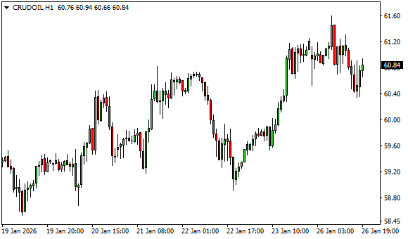 Vývoj ceny ropy WTI (1hodinový graf - H1):